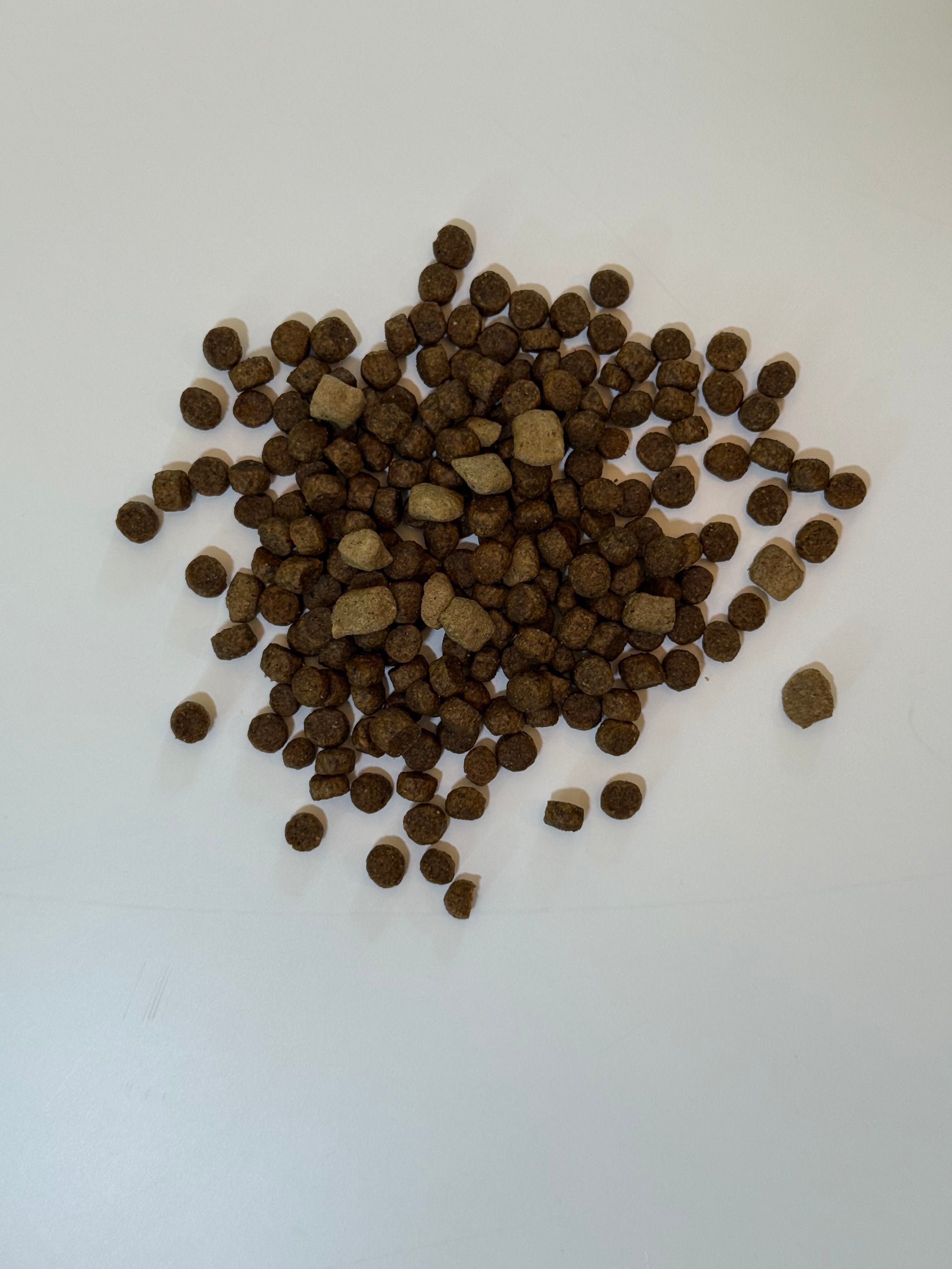 - Freeze-dried chicken hearts, liver, and sweet potato for flavor, texture, and instinctive appeal